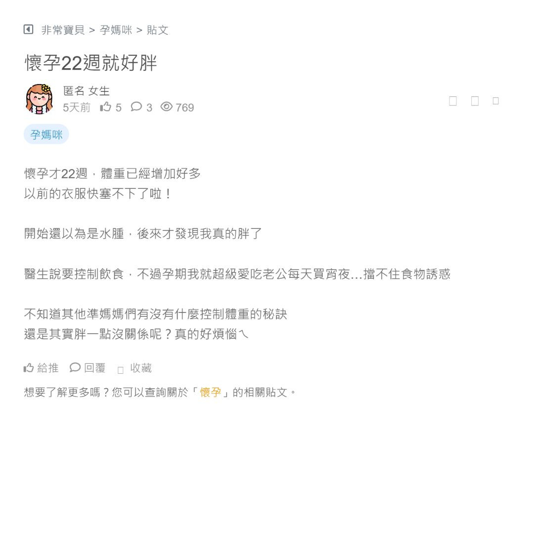 近期胖的速度已經超乎我的想像 沒想到懷孕晚上睡不好 身材讓我那麼焦慮😕 我的BMI已經超重 請問大家30w都胖幾公斤 我該趁寶寶出生前少吃一點嗎? 看更多