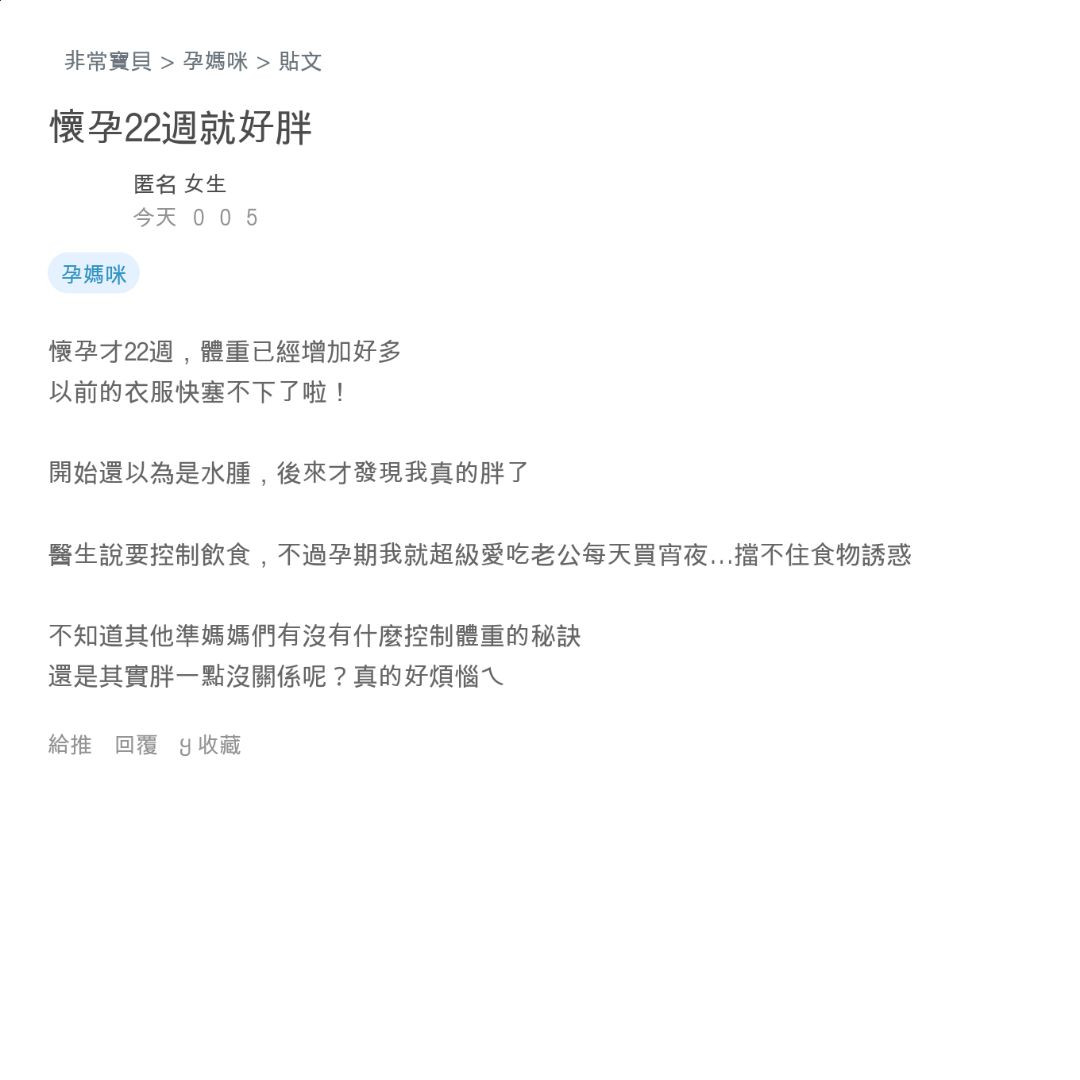 懷孕後,除了害喜、腰痠背痛、半夜狂跑廁所,還有一個讓人超級煩躁的問題,就是體重! 「你現在胖幾公斤了?」 這句話簡直是孕婦的惡夢!!! 有些人就吃不胖,我身邊朋友就是,之前我還沒懷小寶寶跟她去逛街,還被店員誇獎「根本看不出來懷孕耶!」 但大多數人(例如我🙋♀️),就是一胖不可收拾,甚至連手指、... 看更多