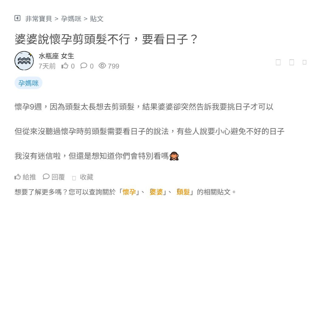懷孕9週,因為頭髮太長想去剪頭髮,結果婆婆卻突然告訴我要挑日子才可以