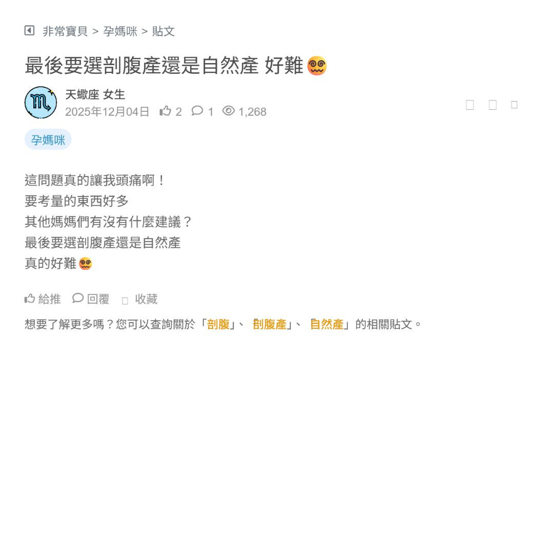 最後要選剖腹產還是自然產 好難😵💫
