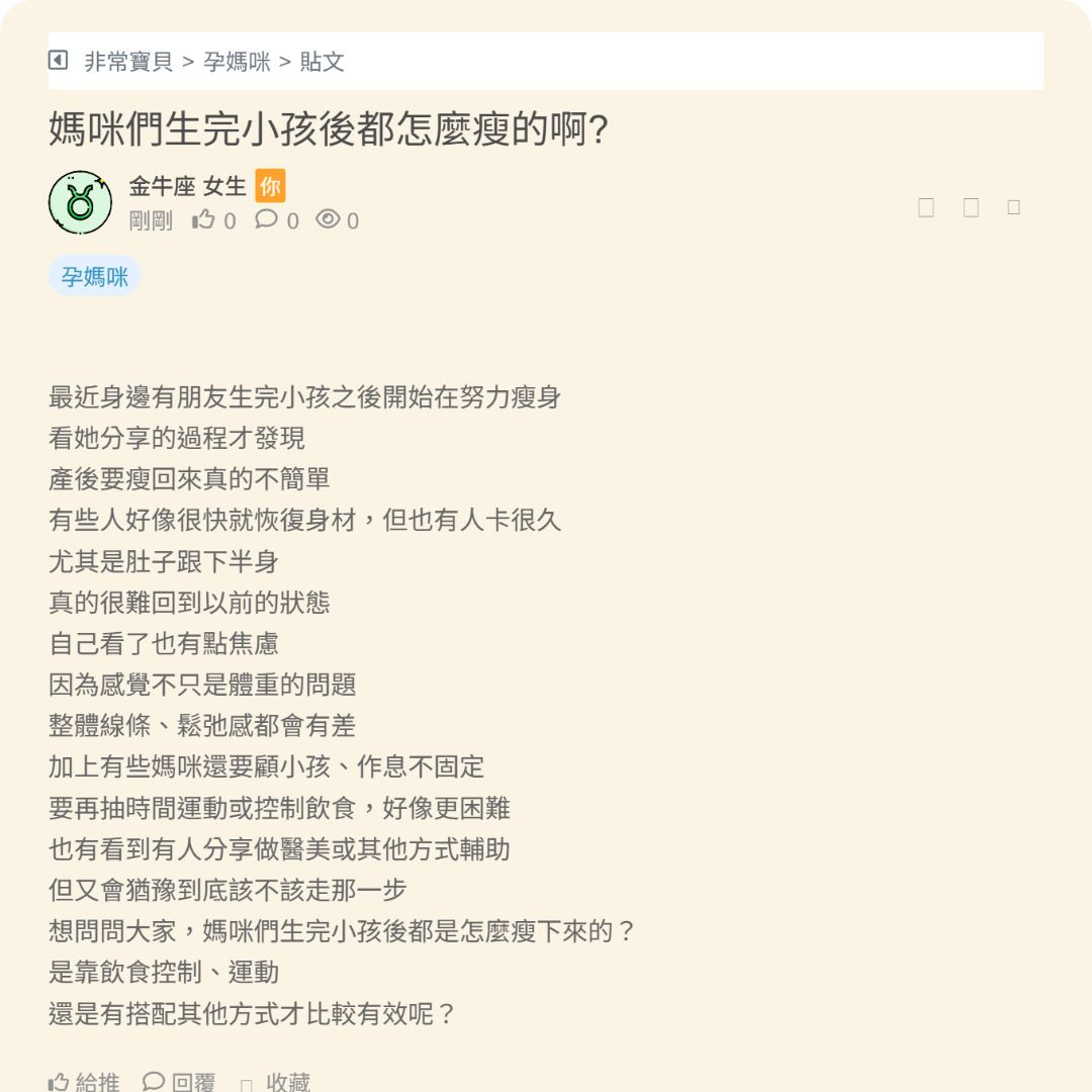 最近身邊有朋友生完小孩之後開始在努力瘦身