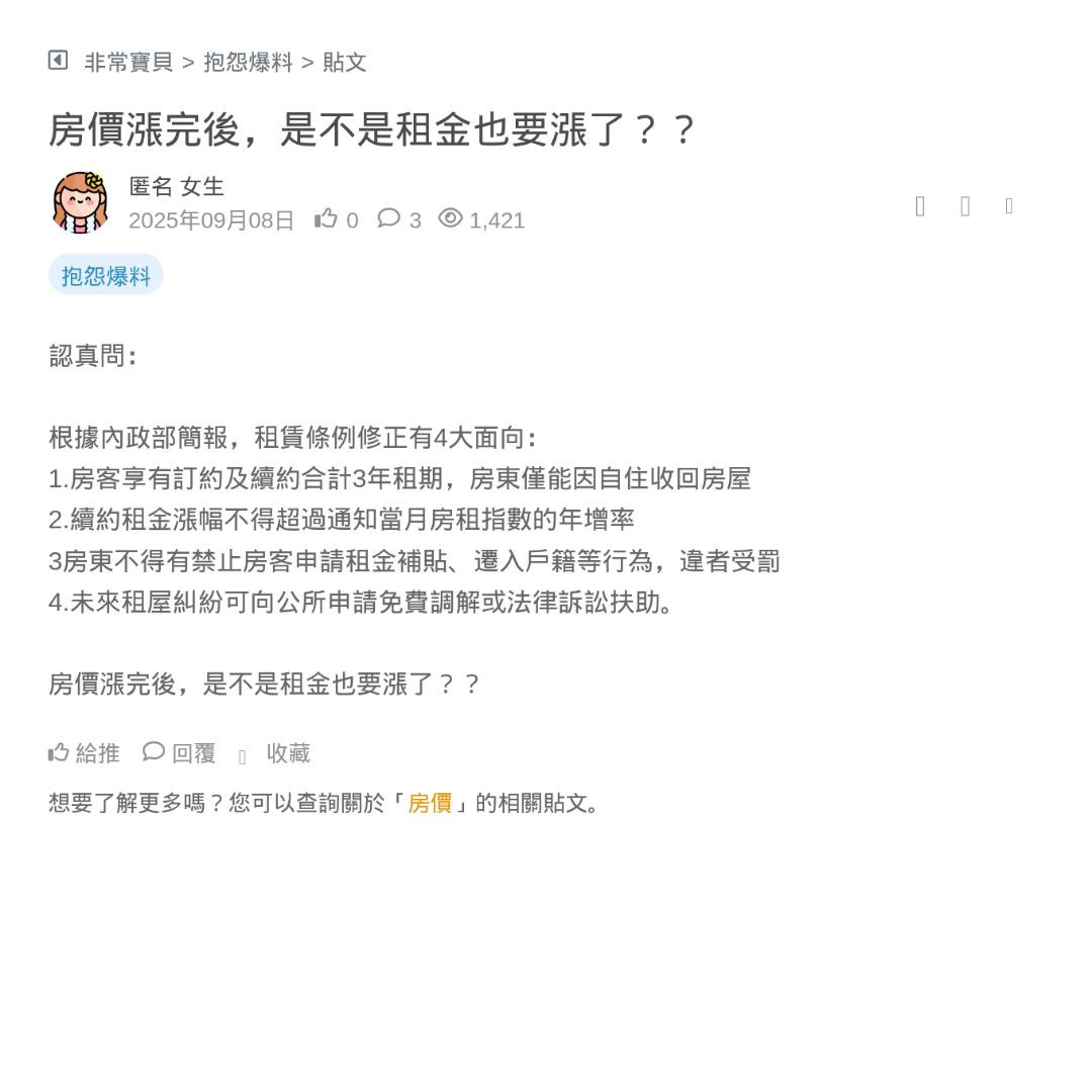 聽另外一則新聞,有人預估房租直接漲15%
