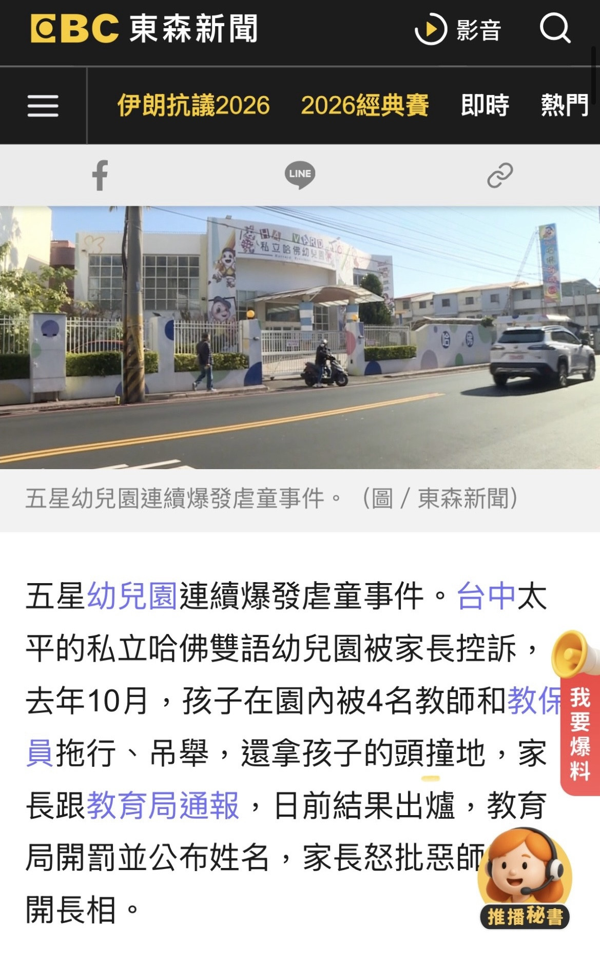 台中太平的私立哈佛雙語幼兒園怎麼搞的?😡新聞報導這間去年10月被家長控訴小孩在園內被4名教師和教保員這樣虐待,真的是太過分!!!居然拖行、吊舉,甚至還拿孩子的頭撞地板。