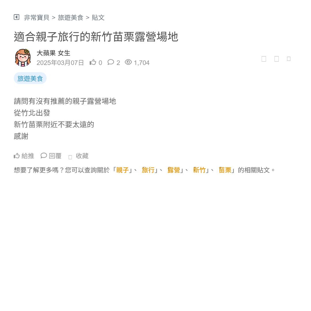 大家有沒有推薦桃園、新竹、苗栗的親子飯店~ 看更多