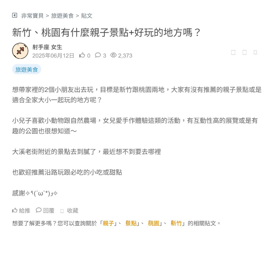 大家有沒有推薦桃園、新竹、苗栗的親子飯店~ 看更多