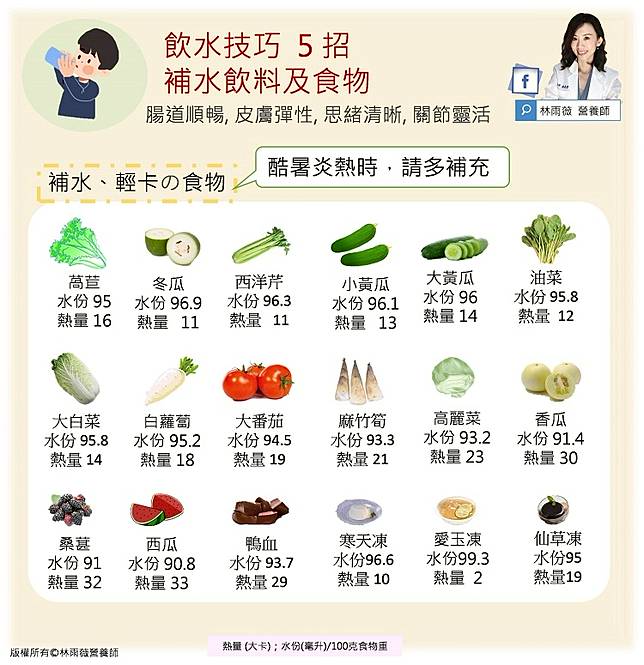 以上飲料與食物皆能有效替代部分飲水需求,且多數熱量低、營養豐富,適合日常補水使用。