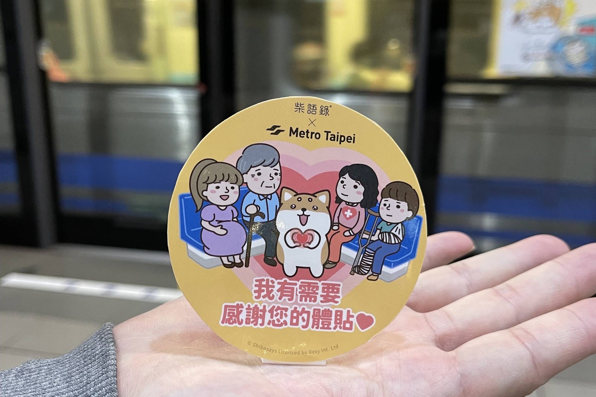 用途與設計:博愛識別貼紙主要用於讓身體不適、孕婦、老人及行動不便者在公共交通工具上獲得他人禮讓。新款貼紙以溫暖色系為底色,圖案包含可愛的柴語錄角色雙手比劃大愛心,並有身體不適、孕婦、老人及行動不便者的象徵圖案,體現對有隱形需求旅客的關懷。