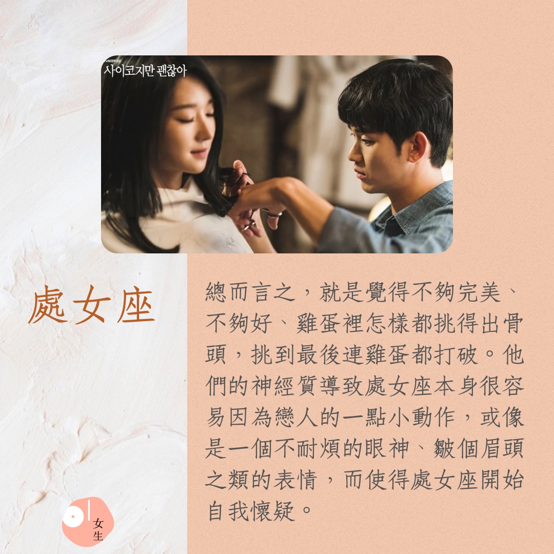 情緒特質:處女座的情緒波動較大,容易因小事感到難過或興奮,情緒脆弱且敏感。他們不吝於分享自己的秘密,但同時也會為自己劃定明確的界限,不輕易關心他人私事,這種特質讓他們在人際互動中保持一定距離,增加了社交的難度。