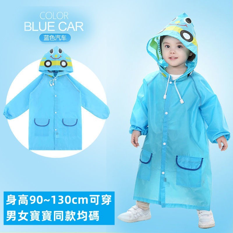 - Baby童衣的兩件式雨衣設計高領加拉繩,防風防水,超大透明帽簷保護臉部視線清晰,且有可調式書包空間,適合7~10歲兒童使用。