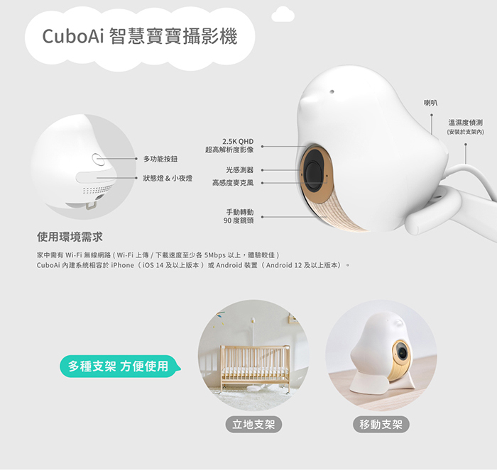 此外,這類智慧寶寶攝影機通常具備高解析度影像(如2.5K QHD),讓家長能清楚看到寶寶狀況,並且支援遠端即時觀看,方便隨時掌握寶寶安全。