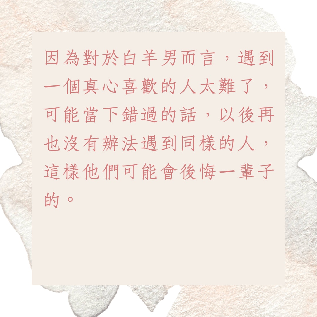 專情且努力提升自己:雖然牡羊男在曖昧階段可能較花心,但一旦進入穩定戀愛關係,會變得很專情且積極提升自己,這種努力往往是為了讓你們的關係更好。