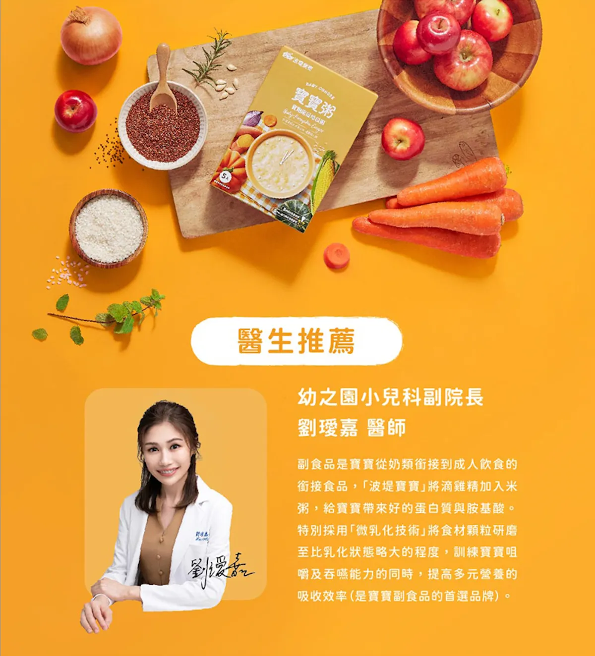 - 雙醫師認證: 波堤寶寶粥是業界唯一獲得雙醫師認證的產品,表明其在營養和安全性方面獲得了專業的肯定。