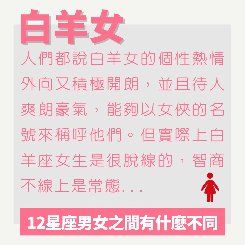 - 積極主動與熱情洋溢:白羊女通常充滿活力,對生活和工作都非常投入,喜歡主動出擊,積極結交新朋友,給人感覺開朗且友善。
