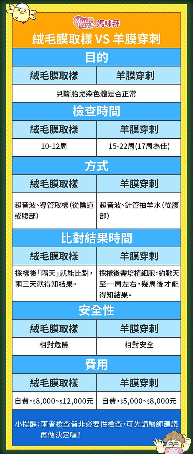 | 項目 | 羊膜穿刺 | 非侵入性檢查(如NIFTY) |