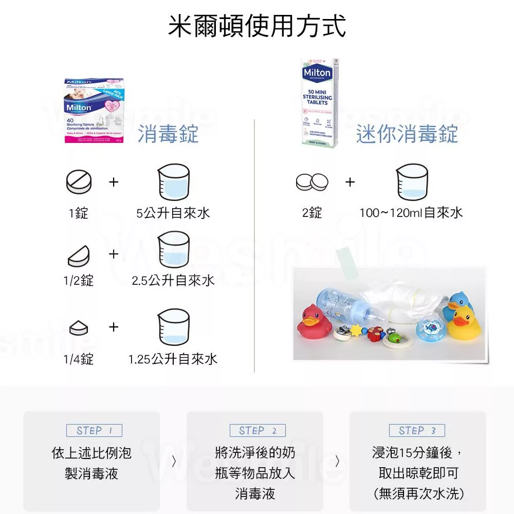 以上為米爾頓消毒錠的標準使用方法與注意事項,適用於嬰幼兒用品、餐具及月經杯等多種物品的消毒,能有效降低病菌感染風險。