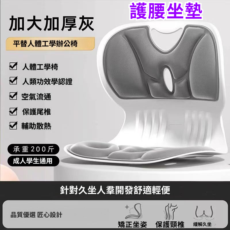 - 護腰坐墊設計貼合人體腰椎的自然弧度,能夠支撐腰部,使脊椎維持自然曲線,避免因坐姿不良(如駝背或骨盆後傾)導致腰椎過度彎曲或受壓。