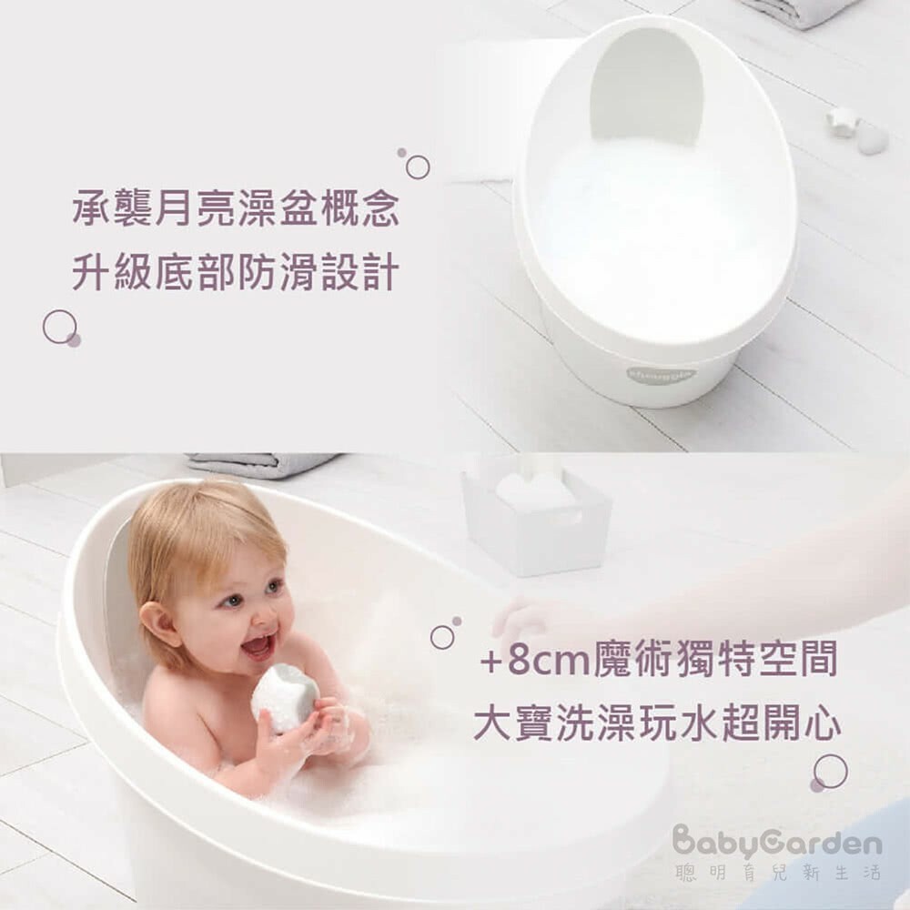 採用省水設計,僅需約2公升的水即可滿足沐浴需求,同時一體成型的結構便於清洗與收納。 - 成長型設計