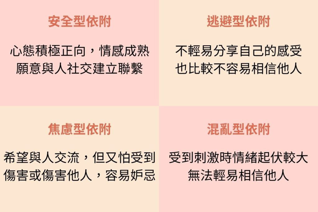 - 安全型依附:孩子感受到穩定且溫暖的照顧,能自信地探索環境,未來在人際互動中較為自信與穩定。