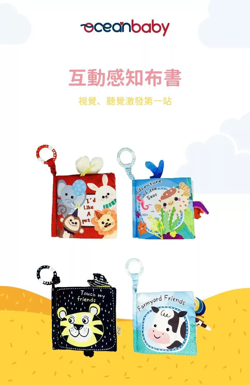 多感官刺激與學習:布書材質柔軟,結合不同觸感與聲音元素(如鈴鐺、沙沙聲),能刺激孩子的感官發展,並透過親子互動增強學習效果。