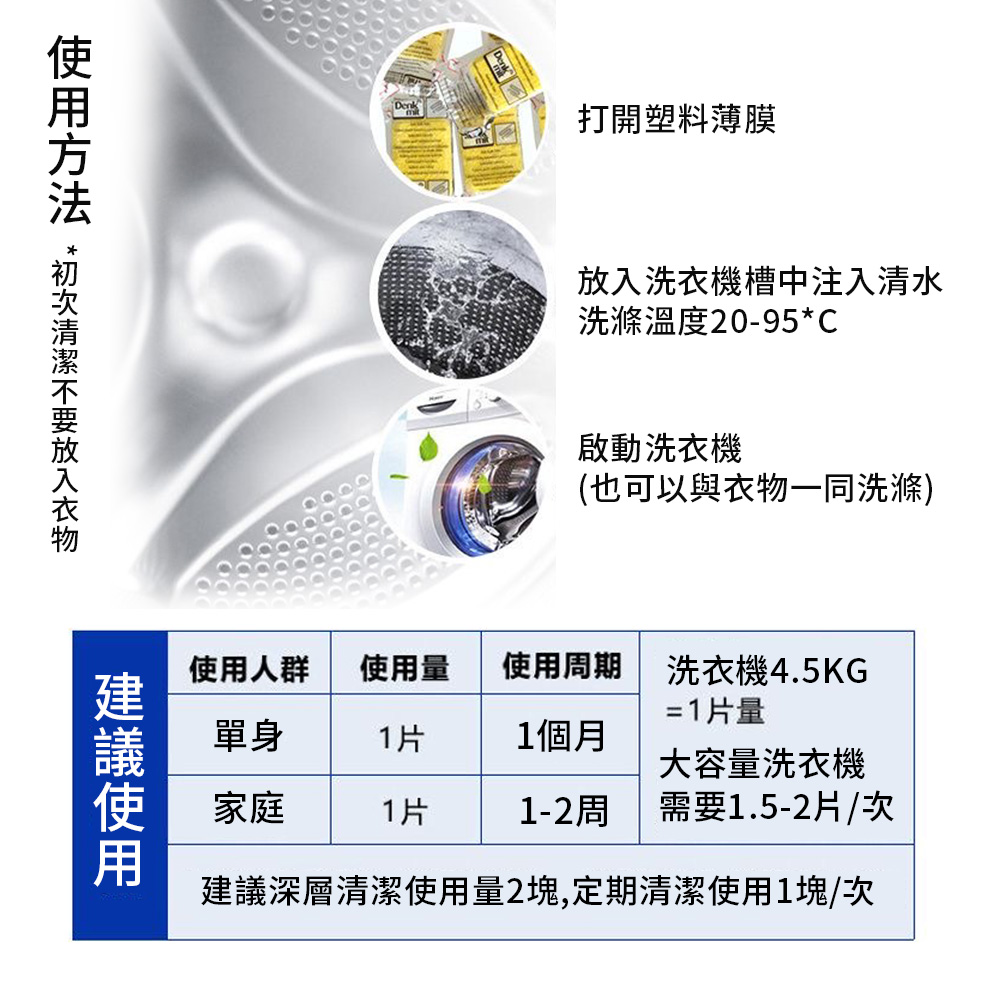 透過自動清潔模式,洗衣機會利用高溫水流、震動及專用清潔劑自動清洗內槽,簡化清潔流程,避免手動清潔時可能遺漏的死角。 -