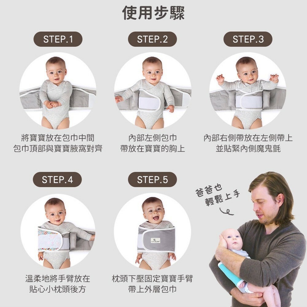 所以,早產兒包巾使用應以安全、透氣、適度鬆緊為原則,並隨寶寶發展調整使用方式,避免限制肢體活動或造成過熱,並注意臉部朝上與自由呼吸空間,才能達到安撫與保護的效果。