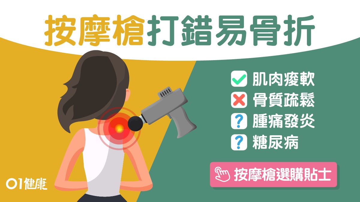 - 長者及骨質疏鬆患者:骨頭較脆弱,按摩槍的強力擊打可能導致骨折。
