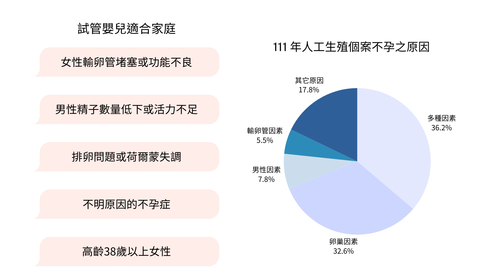 - 試管嬰兒的胚胎培養與細胞保存需由經驗豐富的胚胎師操作,且實驗室設備的安全性與先進性也會影響成功率。