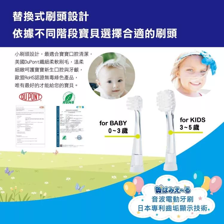 幼兒使用電動牙刷時,仍需家長陪同監督,確保刷牙姿勢正確,避免誤吞牙膏或刷頭傷害口腔。 -