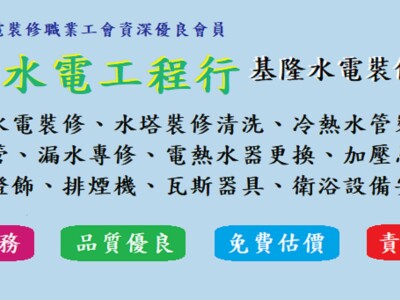 基隆地區有多家價格合理且服務良好的水電師傅和公司。以下是幾個推薦: