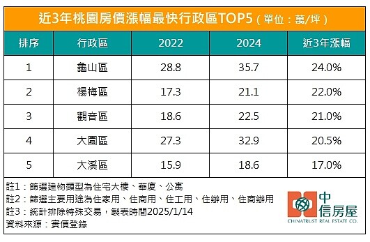桃園房價年漲幅與區域差異分析