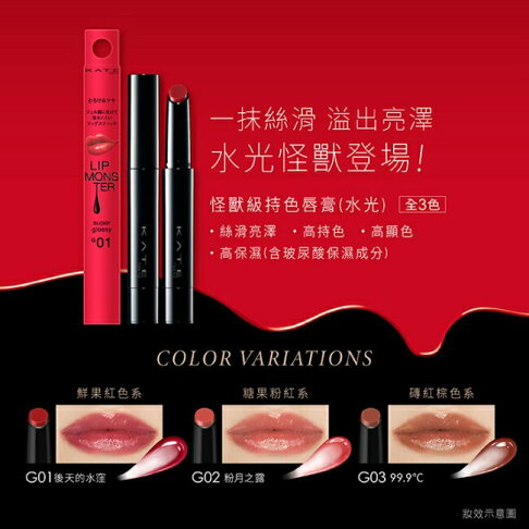 KATE 怪獸級持色唇膏(水光)以其保濕和高持色的特點受到好評,但在使用前仍應注意個人過敏情況,並進行必要的測試。