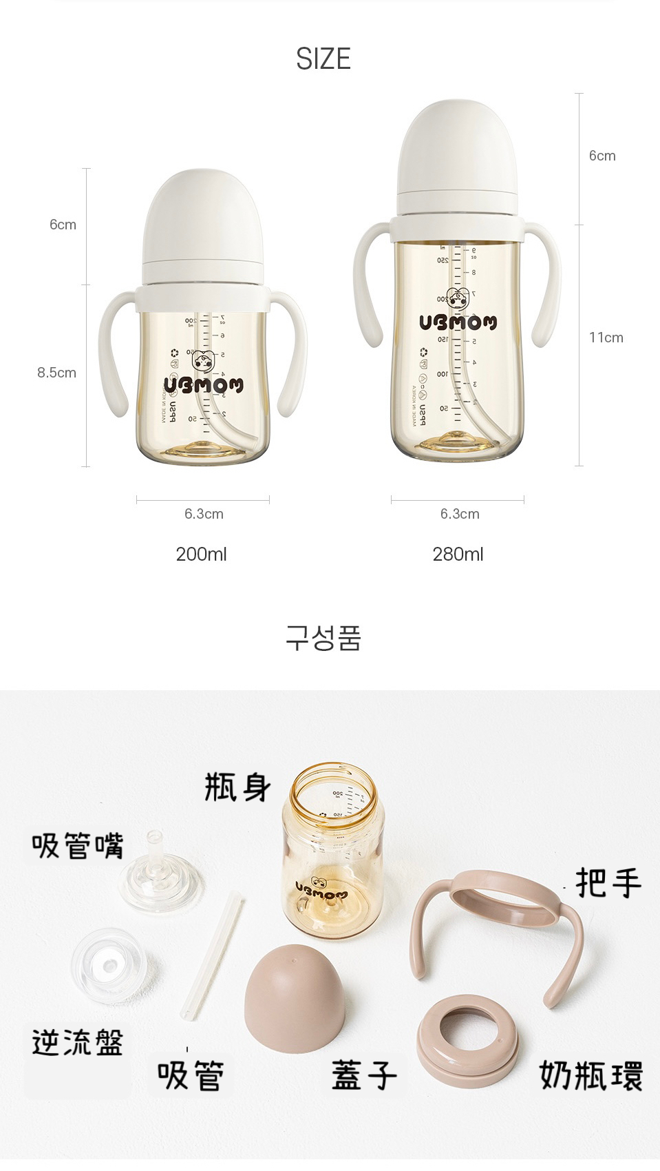 不回滲結構:水杯內部結構設計避免液體和食物殘渣逆流回吸管或杯口,這樣能防止食物殘渣在水杯中滋生細菌,特別適合開始吃副食品的寶寶使用。
