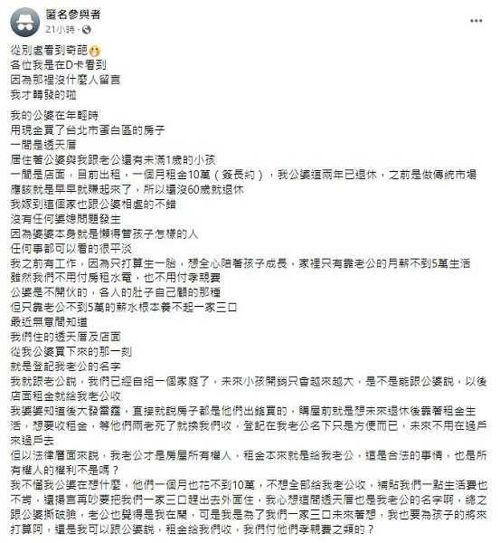 婆婆將退休金給子女,卻仍要求生活費:有案例中,婆婆打算將全部退休金給小姑,卻又要求媳婦和兒子每月支付高額生活費(如6萬元),造成媳婦經濟壓力與不滿。