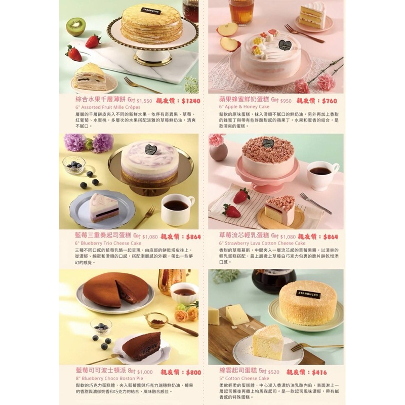 星巴克2025年母親節蛋糕系列以水果主題和清新爽口的口味為主,特別適合喜歡酸甜口感的媽媽們,主要蛋糕款式包括: