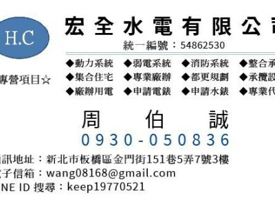 | 昱金水電工程行 | 擁有甲級電匠執照、室內配線乙級、用電設備檢驗等證照,服務新北、台北、桃園,提供家庭、工廠、企業水電維修、配線、照明、排水、熱水器、電力申請等全方位服務,且有20多年經驗,評價高,報價合理。 | 專業且經驗豐富,服務範圍廣泛,適合需要全方位水電工程的客戶 |