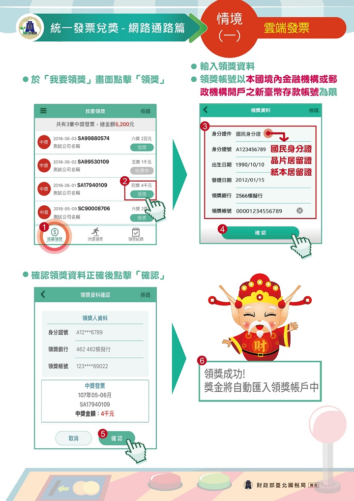 - 中獎的紙本發票正本,並且需填妥「統一發票兌獎聯」