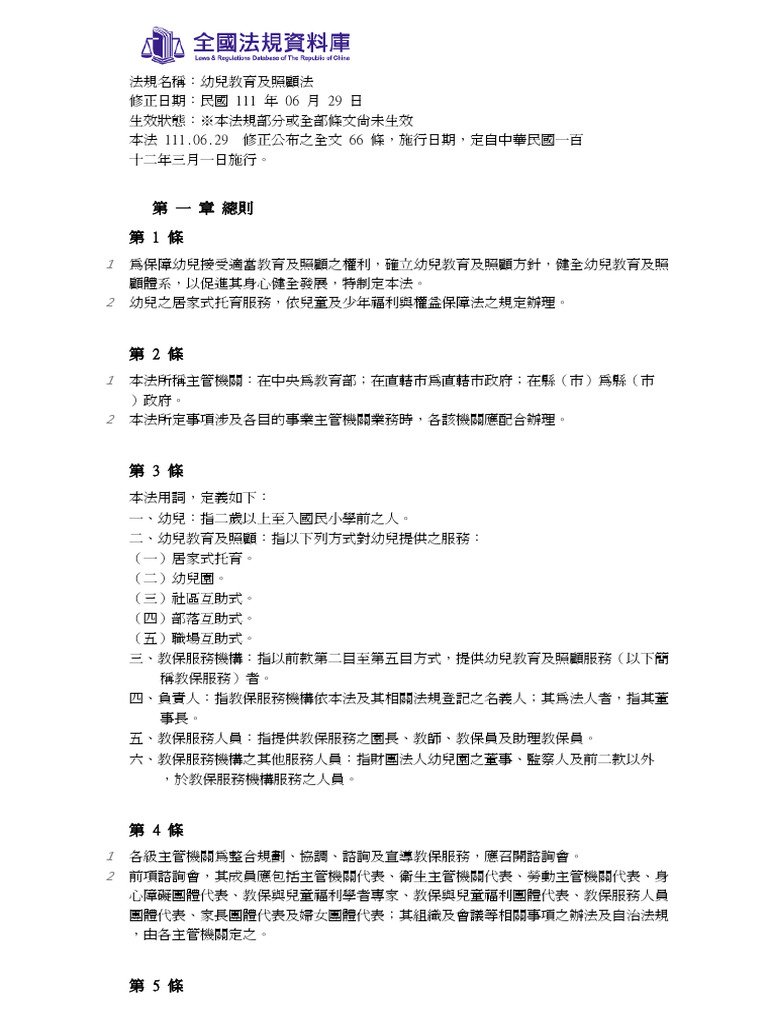 綜合來看,幼兒教育及照顧法透過明確的法規條文,從設立、服務內容、人員資格、安全保障到監督管理,全面提升幼兒園的管理規範與服務品質,保障幼兒權益並促進其身心健康發展。