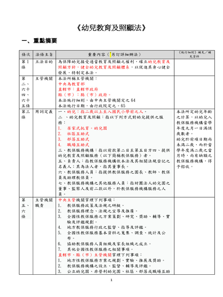 幼兒教育及照顧法設立嚴謹的監督機制,包括家長參與與監督權、幼兒園設立及分班規則、收退費及會計管理、評鑑制度,以及違規罰則,確保教保服務品質。 -