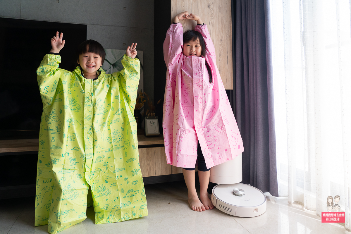 輕便的設計,如斗篷式雨衣,適合小小孩,套頭輕鬆;拉鍊+鈕扣設計則更適合大一點的小朋友。