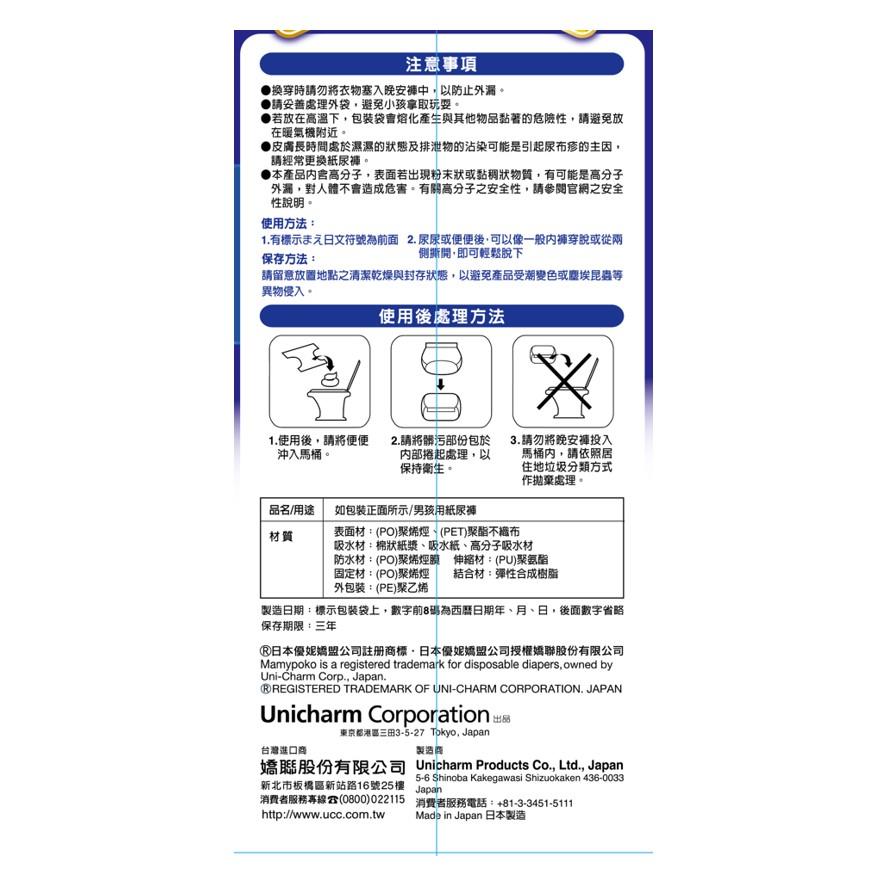 穿著建議:請依照寶寶的體型選擇適合的尺寸,確保褲子穿戴合身但不過緊,方便寶寶活動且不易漏尿。晚安褲設計如同小內褲,方便穿脫,適合夜間使用,讓寶寶整晚乾爽舒適。