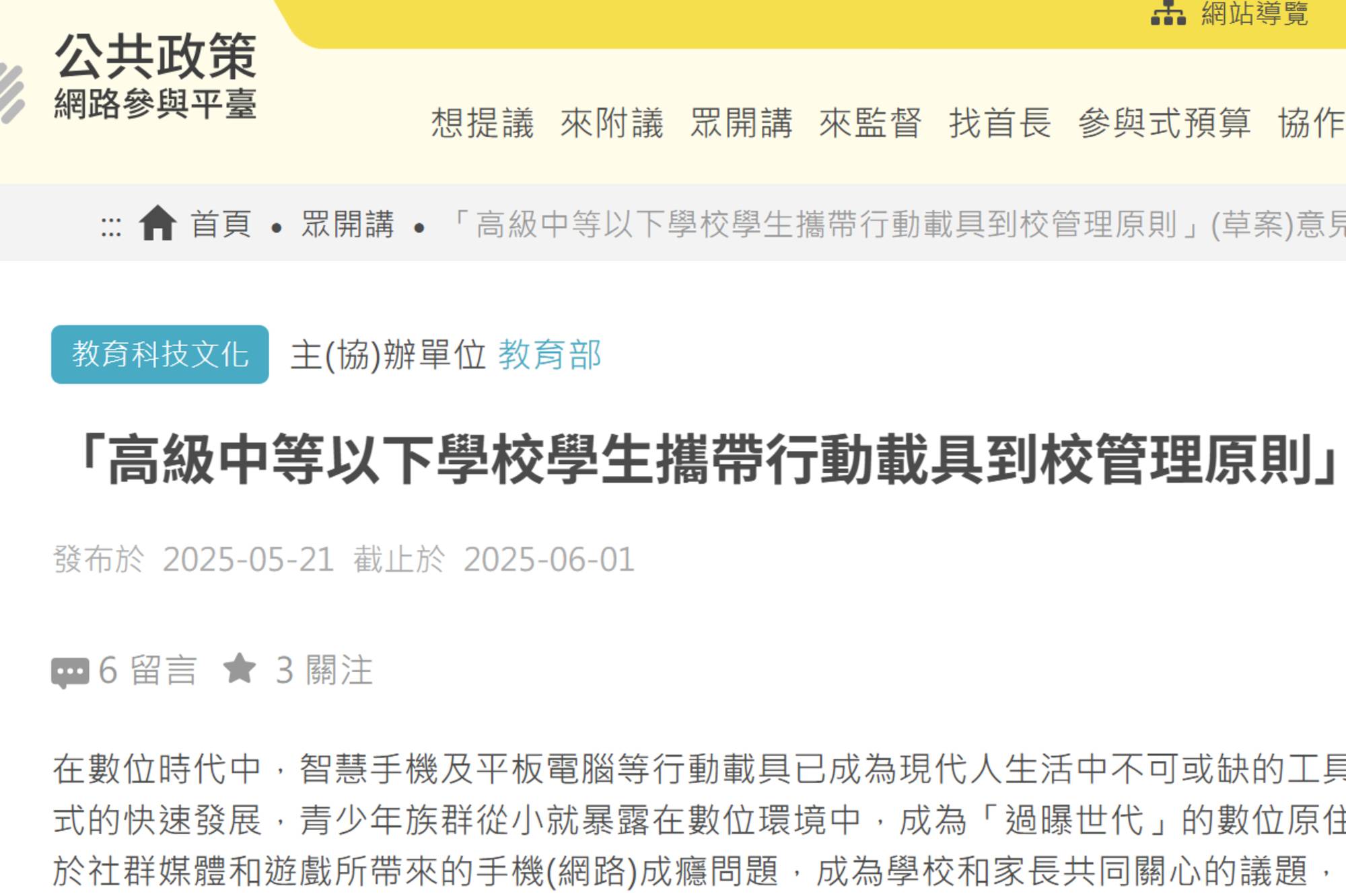 綜合以上,家長的角色不僅是配合學校政策,更需主動提升自身數位素養,與學校及孩子建立良好溝通機制,透過親職教育與陪伴,協助孩子養成健康的手機使用習慣,達成政策推動的目標。
