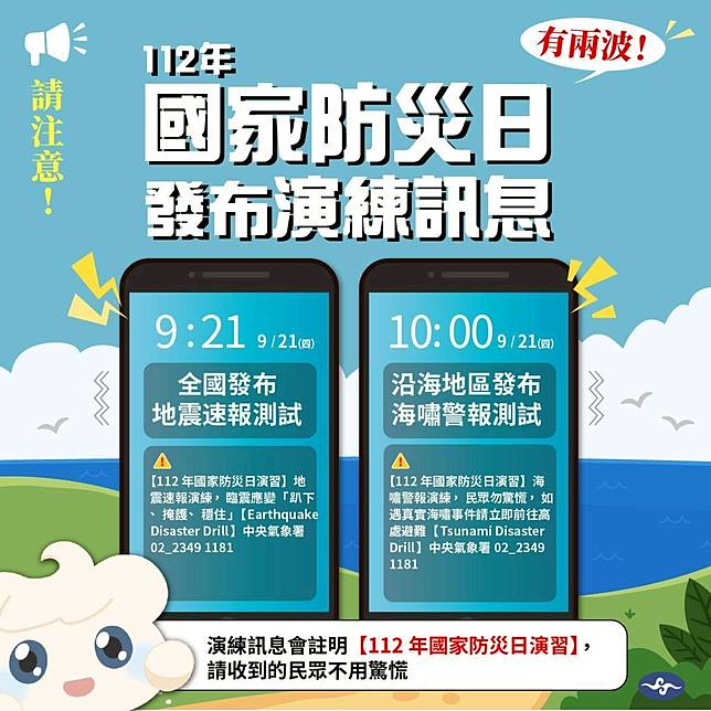 - 海嘯警報屬於「警訊通知」類別,適用於與民眾生活息息相關但無立即生命危險的災害警示。