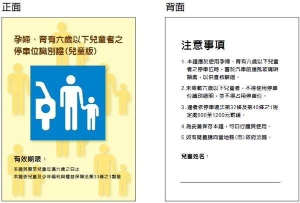 - 使用資格:停車證僅限於當次停車時,車內必須有孕婦或育有6歲以下兒童者,未符合此條件者不得使用孕婦停車位或停車證。
