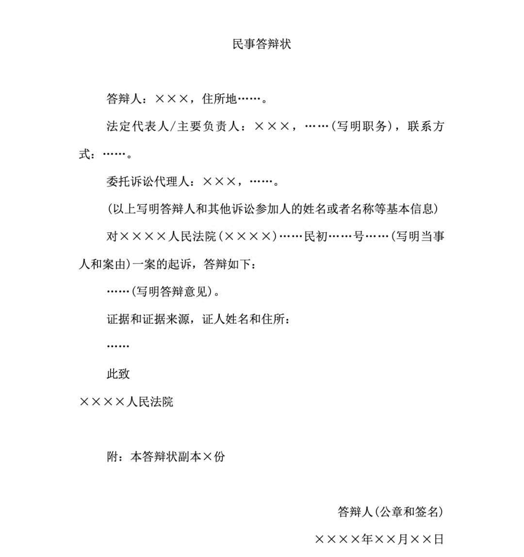 - 答辯狀應於法院指定期限內提交,逾期可能喪失答辯權。
