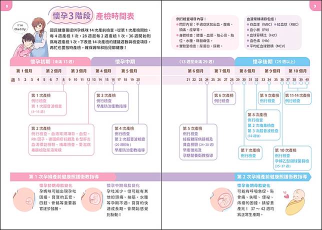 產檢紀錄與追蹤:手冊中設有產檢紀錄表,協助孕婦追蹤每次產檢結果及胎兒發展狀況,並可記錄孕婦疑問,方便與醫護人員溝通。