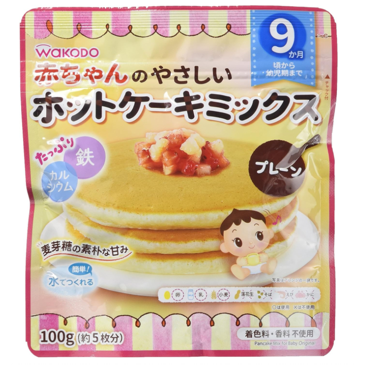 和光堂寶寶鬆餅粉:適合9個月以上寶寶,無添加色素香料,使用無鋁膨脹劑,富含鈣質及鐵質,有原味、菠菜+小松菜、南瓜+地瓜三種口味,適合寶寶副食品使用,安全性高。