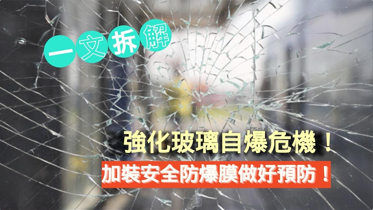 建議在強化玻璃上貼附優質透明防爆膜,這層膜能有效吸附玻璃碎片,防止碎片飛散造成傷害,尤其在自爆或外力撞擊時提供額外保護。