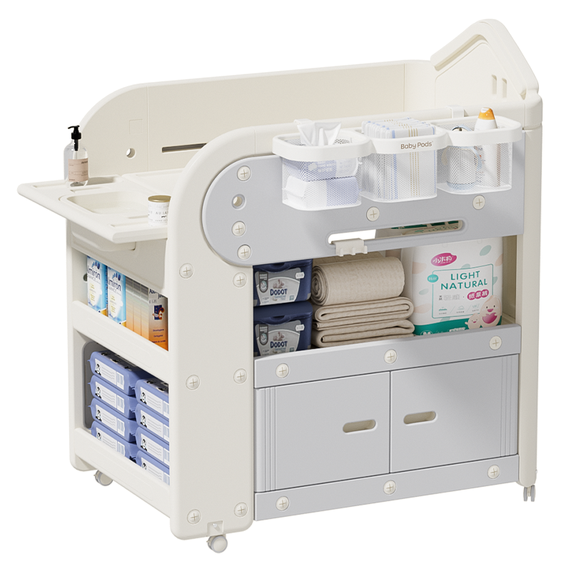 - 下方或側邊多層收納架,分隔合理,方便分類存放不同物品,如尿布、濕紙巾、衣物等。