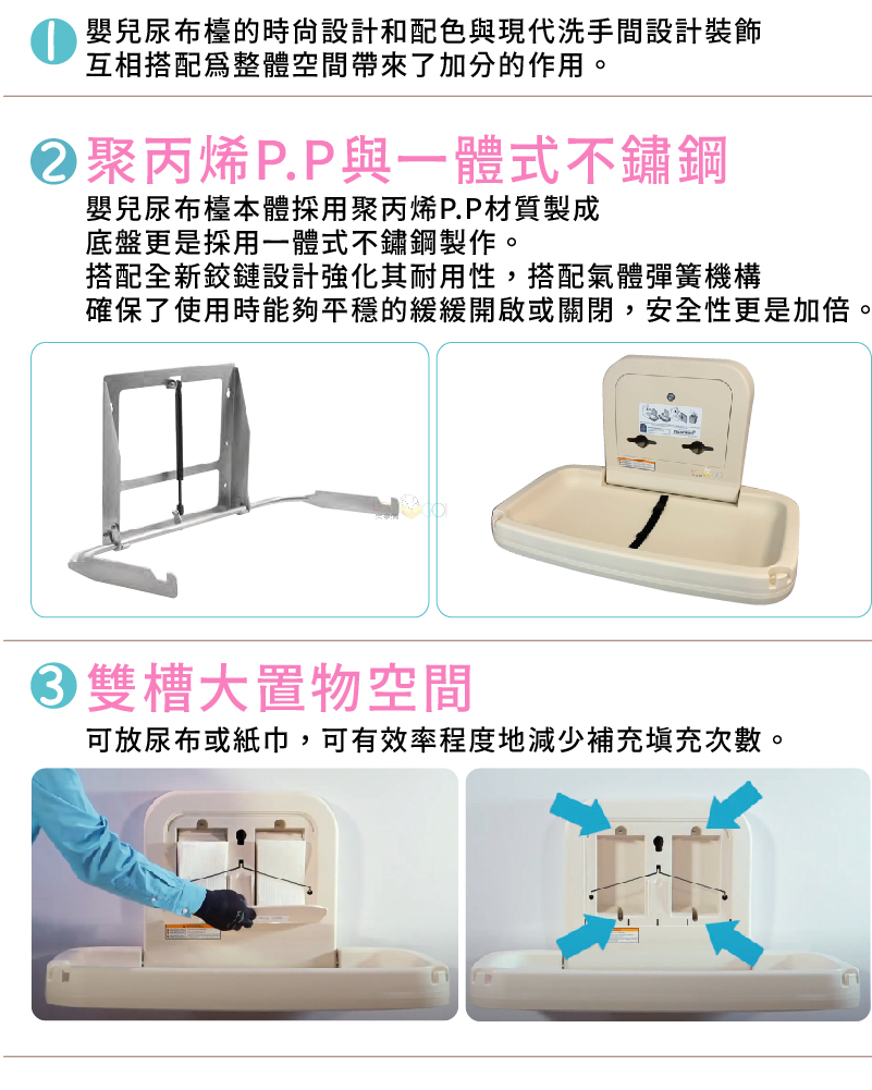 | 主要安全標準 | CNS 15185:2019《兒童護理用品-公共場所用尿布台》 |