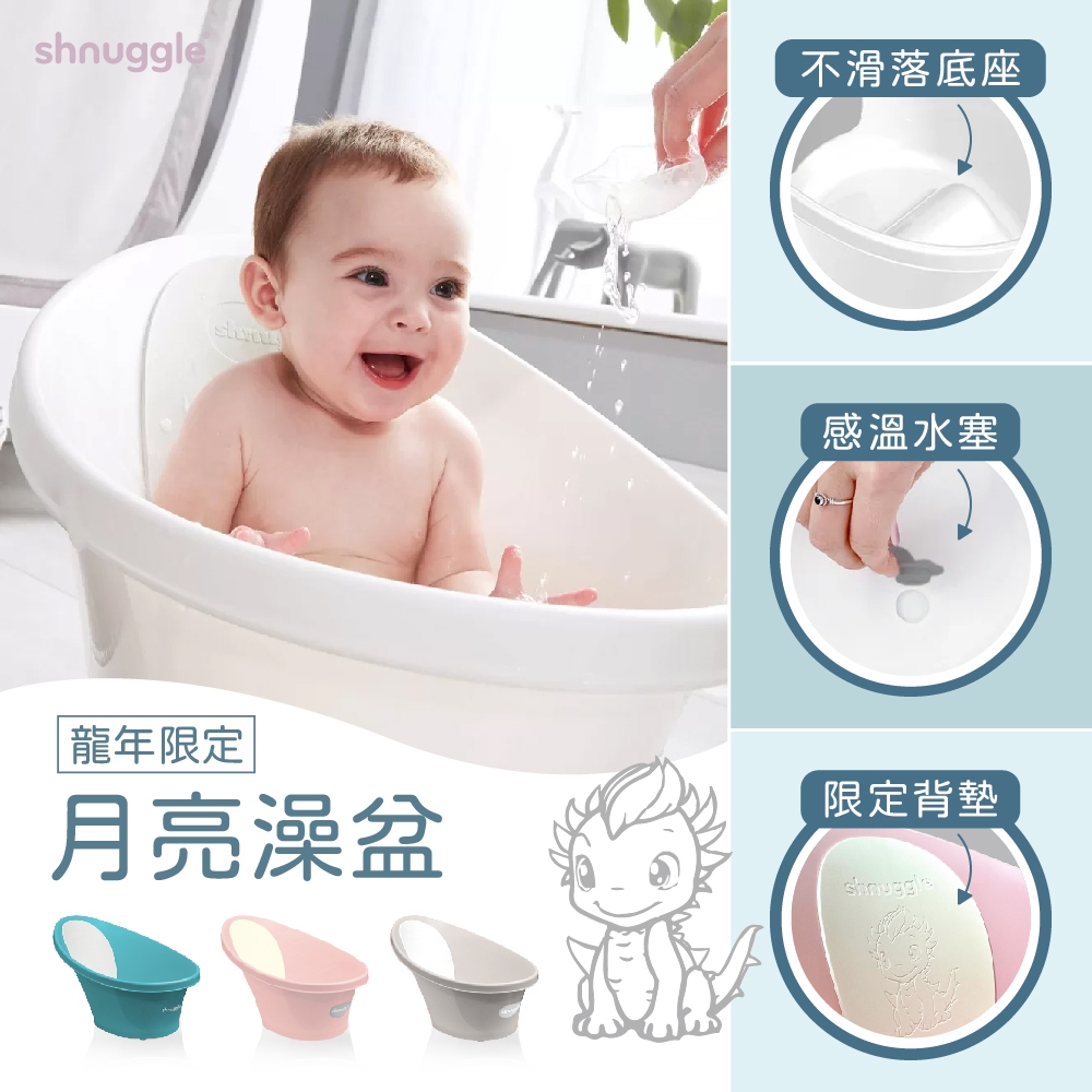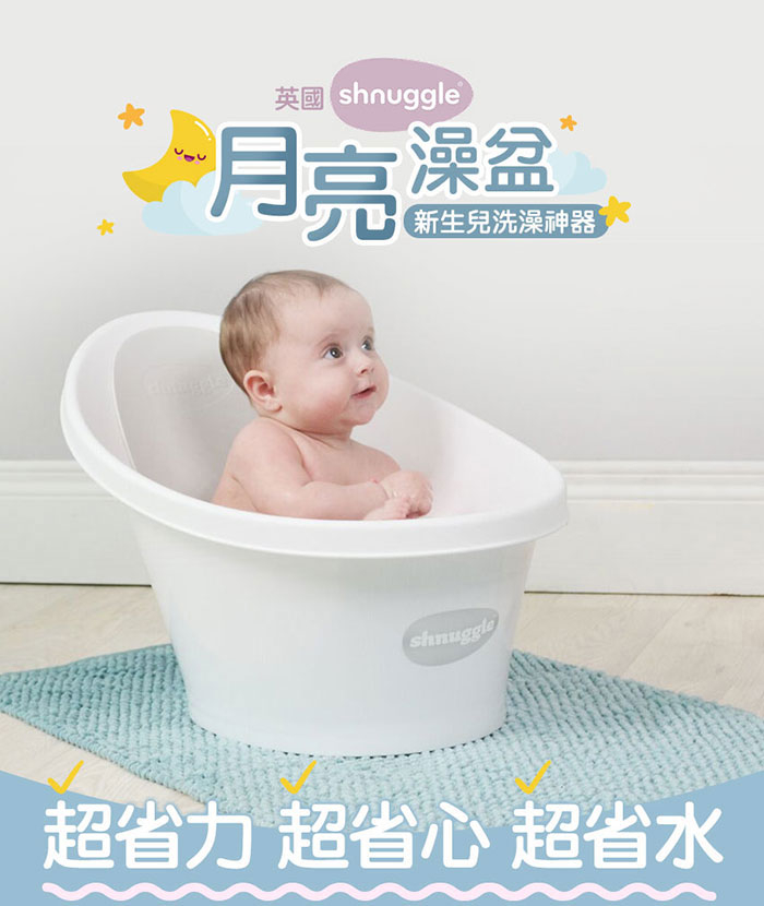 - 月亮澡盆(標準款)適合0至1歲半的嬰兒使用,尤其是新生兒到約12個月大為主流使用階段。